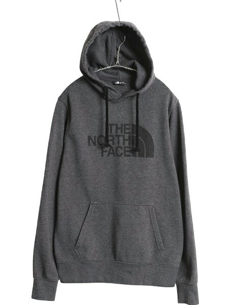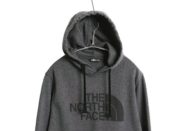 ノースフェイス プリント スウェット フード パーカー メンズ S アウトドア プルオーバー 裏起毛 トレーナー 薄手 シンプル ゆったり 濃灰