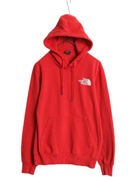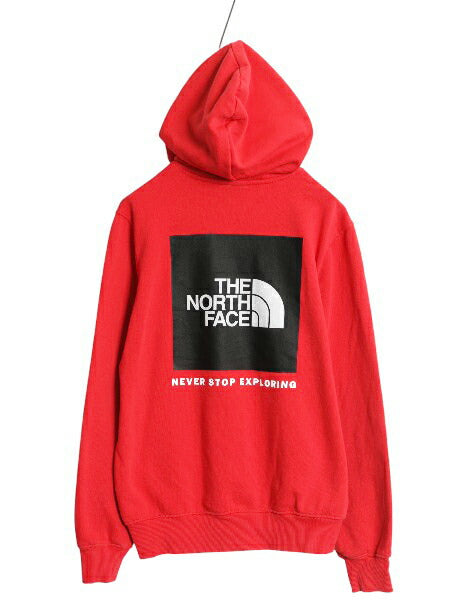 US企画 ノースフェイス 両面 プリント スウェット フード パーカー メンズ S アウトドア プルオーバー トレーナー 裏起毛 ボックスロゴ 赤