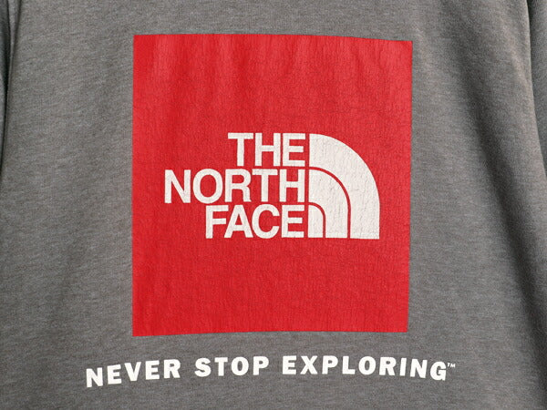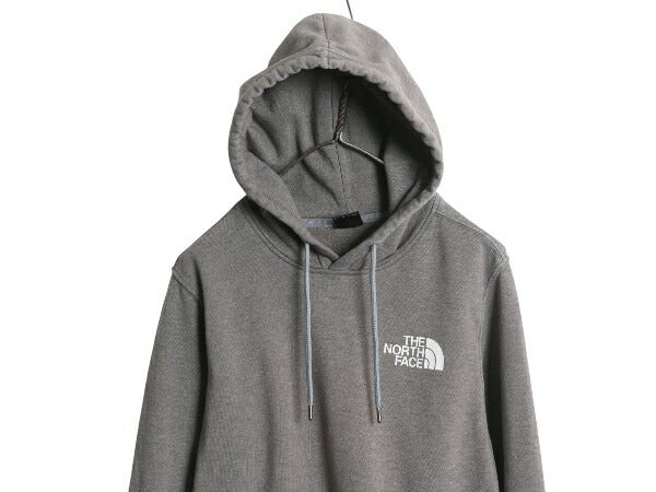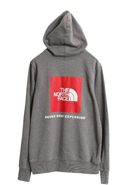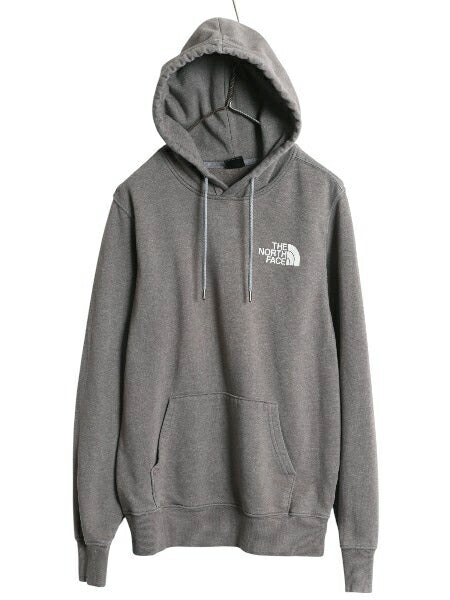 US企画 ノースフェイス 両面 プリント スウェット フード パーカー メンズ S アウトドア プルオーバー トレーナー 裏起毛 ボックスロゴ 灰