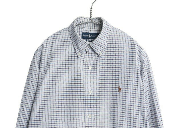 90s ラルフローレン チェック 長袖 ボタンダウン シャツ メンズ M / ポロ 長袖シャツ オックスフォード コットン ワンポイント ワイシャツ