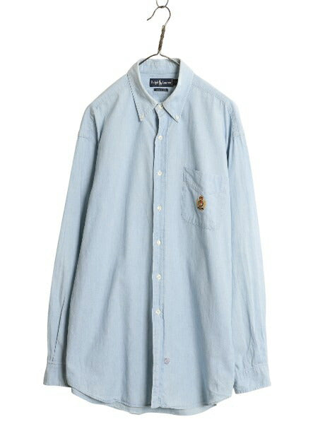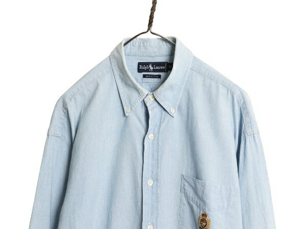 90s ラルフローレン ボタンダウン 長袖 シャンブレー シャツ メンズ XL / オールド ポロ 100% コットン クッキー クレスト BD 大きいサイズ