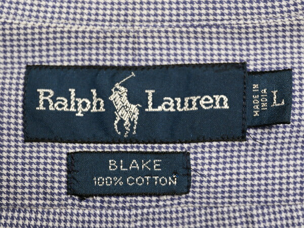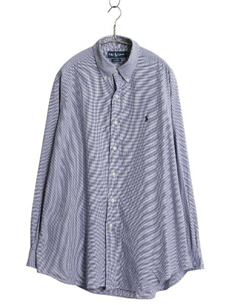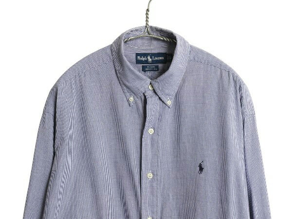 90s ラルフローレン 長袖 ボタンダウン シャツ メンズ L 古着 オールド ポロ 千鳥格子 チェック コットン BD 長袖シャツ ゆったり シンプル