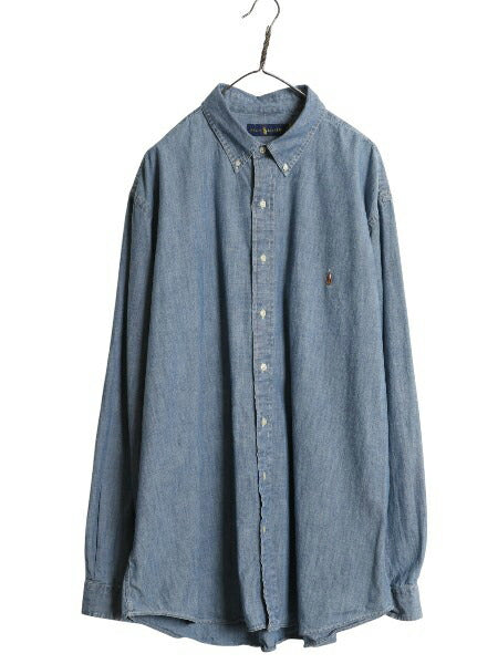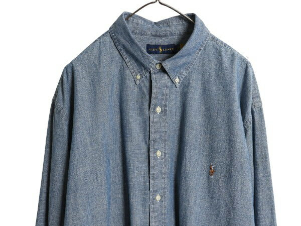 ラルフローレン ボタンダウン 長袖 シャンブレー シャツ メンズ XXL ポロ 100% コットン BD 長袖シャツ ワーク ワンポイント 大きいサイズ