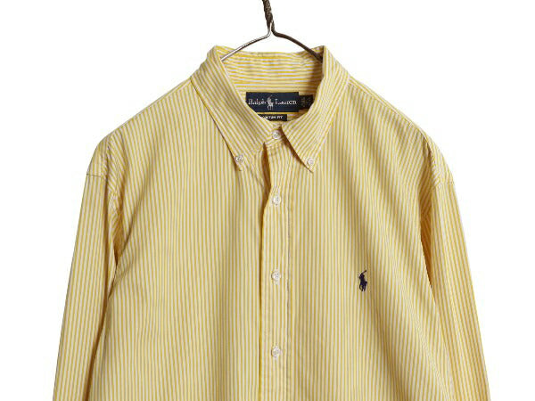 00s ラルフローレン ストライプ 長袖 ボタンダウン シャツ メンズ L 程/ ポロ 長袖シャツ コットン ワイシャツ カジュアル シンプル 細身