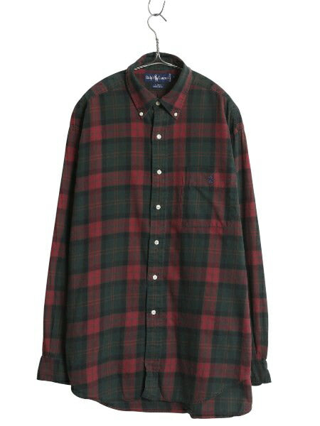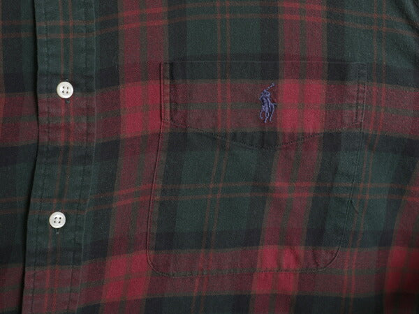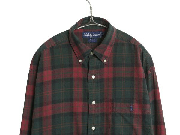 90s ラルフローレン チェック ボタンダウン フランネル シャツ メンズ L オールド ポロ 長袖シャツ ネルシャツ マルチカラー ワンポイント
