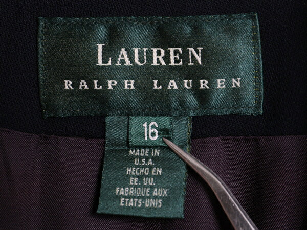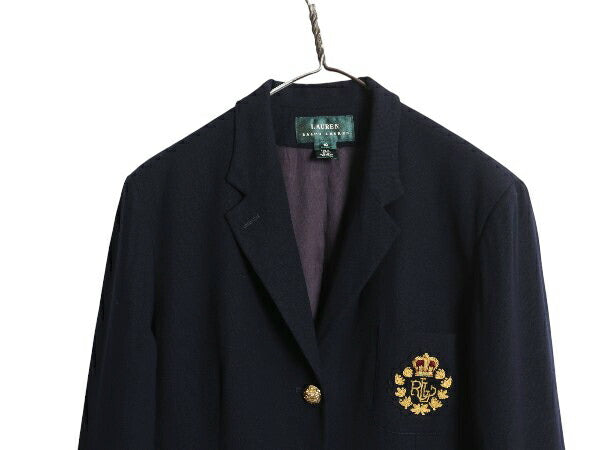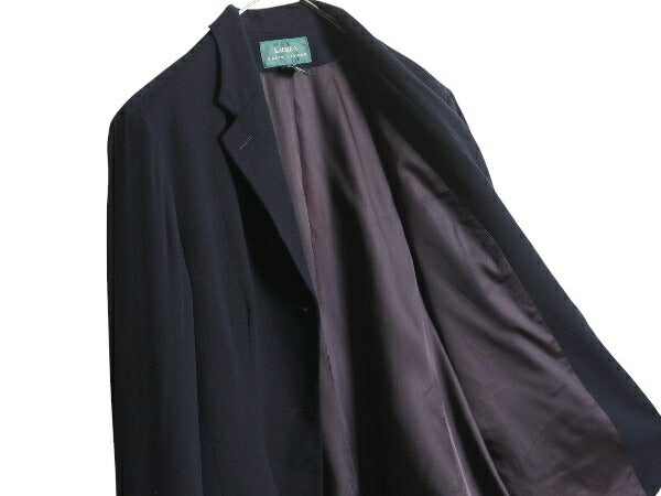 90s USA製 ローレン ラルフローレン テーラード ジャケット レディース XL 程 古着 オールド ポロ ウール ブレザー 紺ブレ きれいめ 濃紺