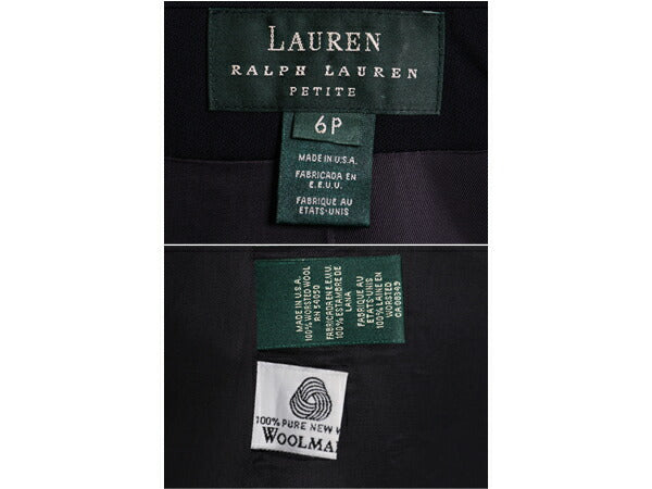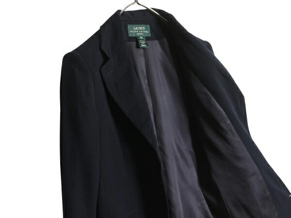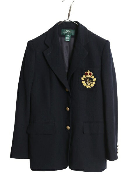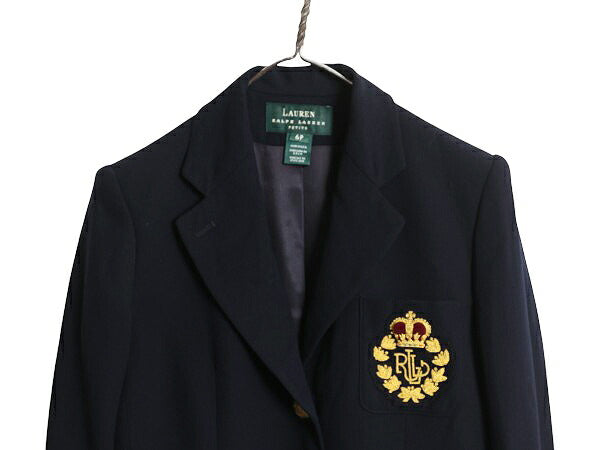 90s USA製 ローレン ラルフローレン テーラード ジャケット レディース S 程 / 古着 オールド ポロ ウール ブレザー 紺ブレ きれいめ 濃紺