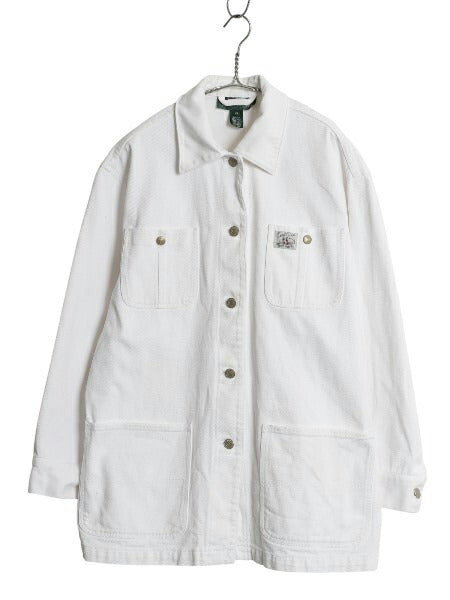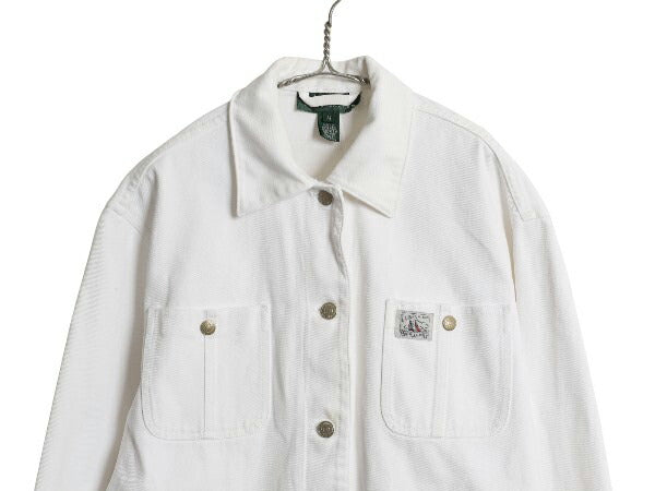 90s ローレン ラルフローレン ホワイト デニム カバーオール レディース M / オールド ポロ コットン ジャケット ブルゾン ハーフコート 白