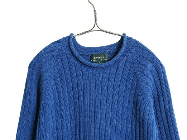 90s ローレン ラルフローレン ロールネック ニット セーター レディース XL 古着 オールド ポロ コットン リブ編み 無地 厚手 大きいサイズ