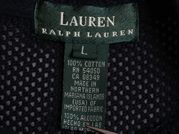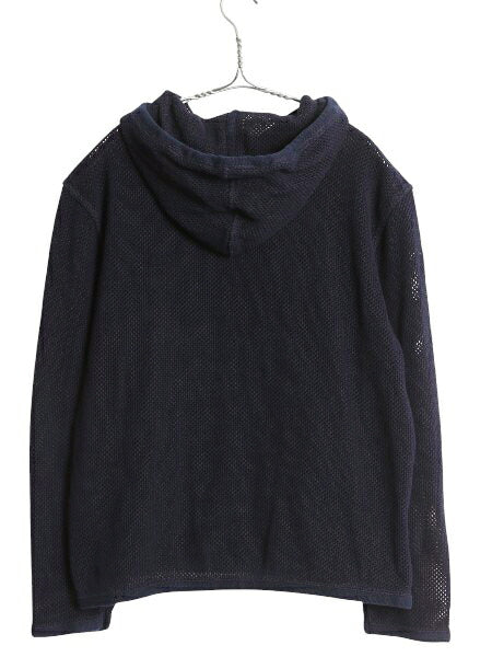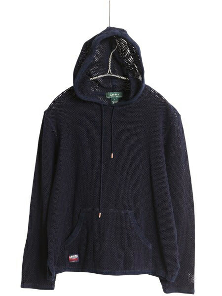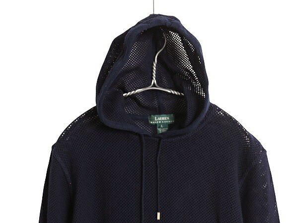 90s ローレン ラルフローレン メッシュ ニット パーカー レディース L / オールド ポロ コットン フード プルオーバー 透かし編み ネイビー