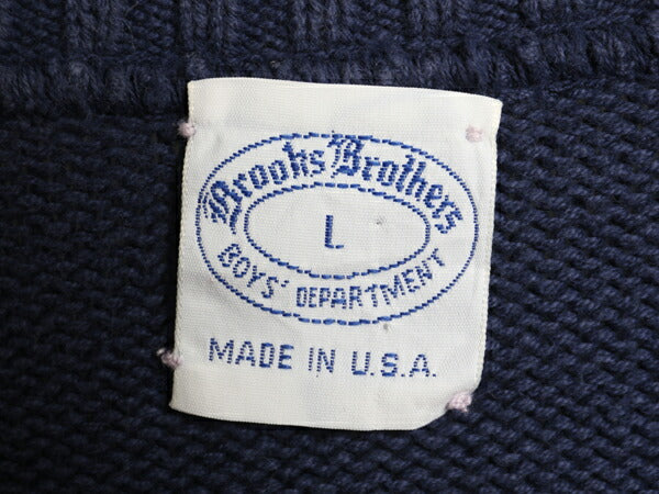90s USA製 ブルックスブラザーズ モックネック ニット セーター ボーイズ L メンズ S レディース M オールド コットン ハイネック 無地 紺