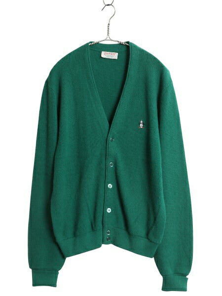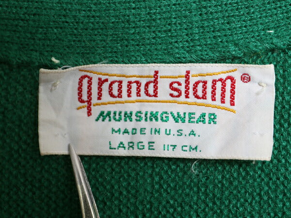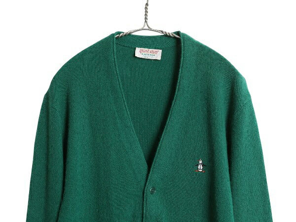80s USA製 マンシング ウェア グランドスラム アクリル ニット カーディガン メンズ L ヴィンテージ 羽織り 前開き ワンポイント グリーン