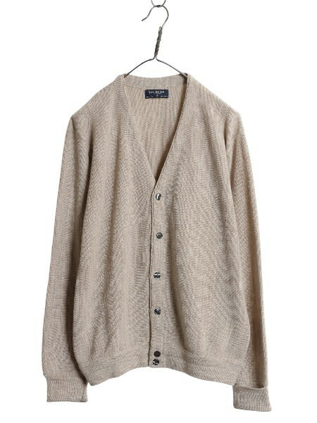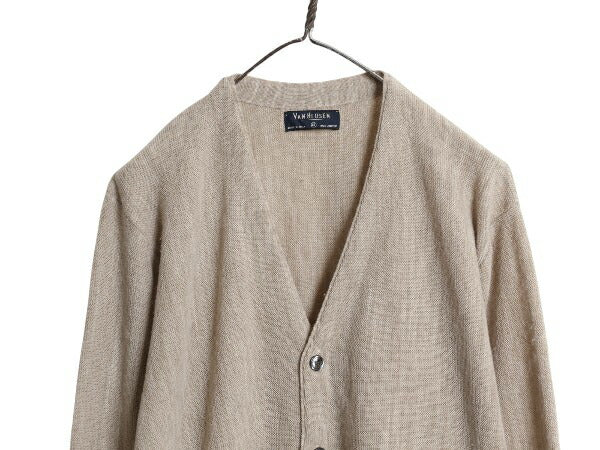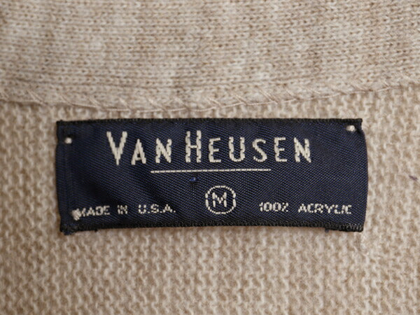 80s USA製 ヴァンヒューゼン アクリル ニット カーディガン メンズ M ヴィンテージ 羽織り 前開き 重ね着 セーター 無地 シンプル ベージュ