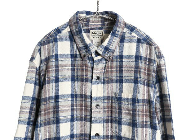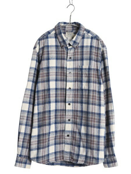 エルエルビーン チェック 長袖 ボタンダウン フランネル シャツ メンズ L 古着 長袖シャツ ネルシャツ コットン BD マルチカラー ゆったり