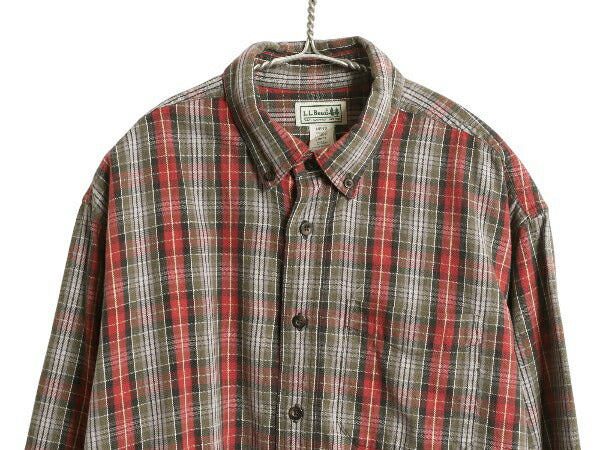 00s エルエルビーン チェック 長袖 ボタンダウン フランネル シャツ メンズ L 古着 オールド コットン 長袖シャツ ネルシャツ マルチカラー