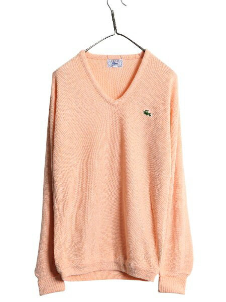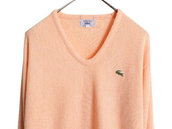 70s 80s USA製 ラコステ Vネック アクリル ニット セーター メンズ レディース L ヴィンテージ ワンポイント ワニ刺繍 シンプル カジュアル