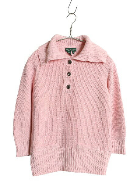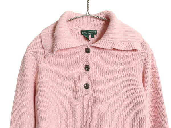 00s ローレンジーンズ ラルフローレン 七分丈 ニット セーター レディース M / オールド コットン リブ編み 襟付き プルオーバー シンプル