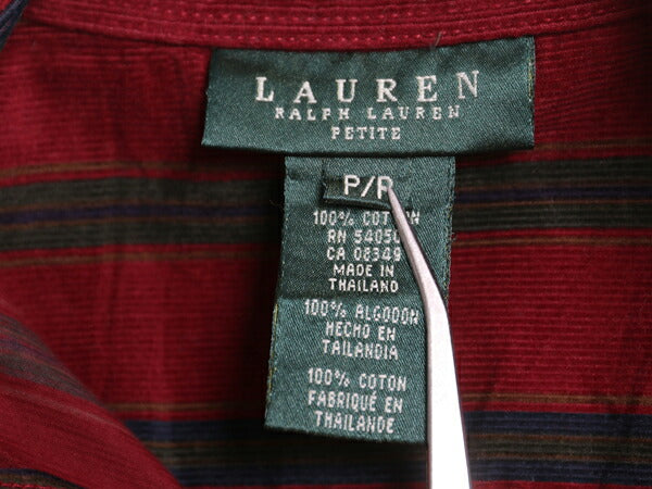 90s ローレン ラルフローレン ストライプ 細畝 コーデュロイ 長袖 シャツ レディース S 程 オールド ポロ コットン マルチカラー きれいめ