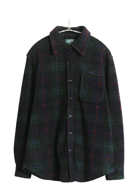 90s ローレン ラルフローレン チェック フリース シャツ ジャケット レディース M 古着 オールド ポロ 長袖シャツ マルチカラー ゆったり