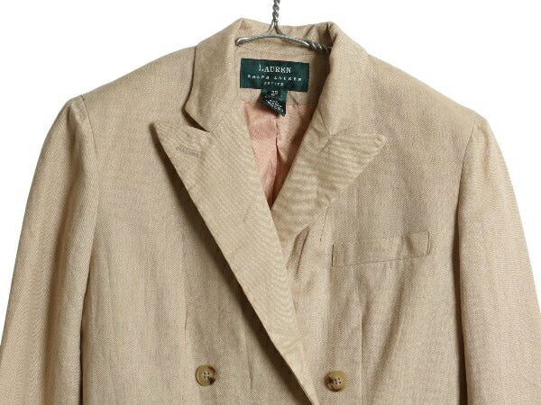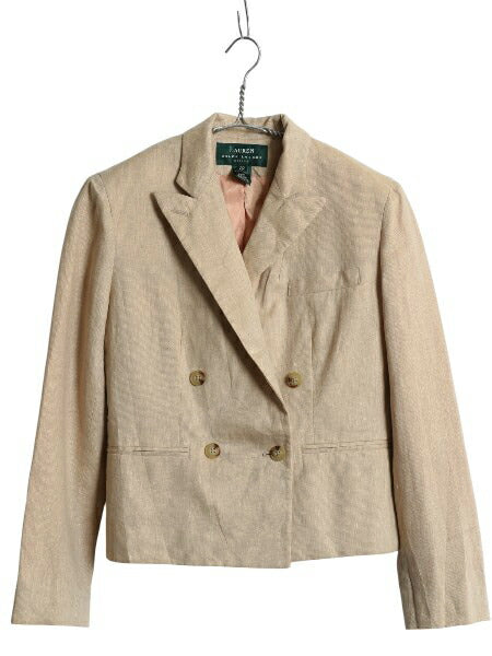 デッドストック 90s USA製 ローレン ラルフローレン ダブルブレスト テーラード ジャケット S 程/ 新品 ポロ 100% リネン サマー ブレザー