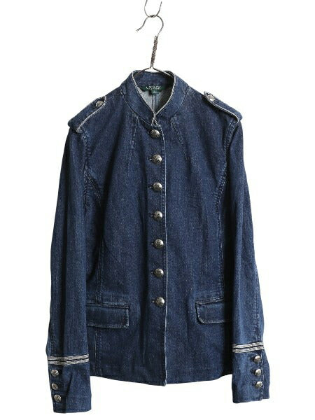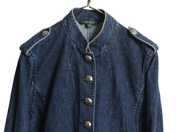 デッドストック 00s ローレン ラルフローレン デニム ジャケット レディース M 程 WW1 アーミー フィールド タイプ ミリタリー ジャンパー