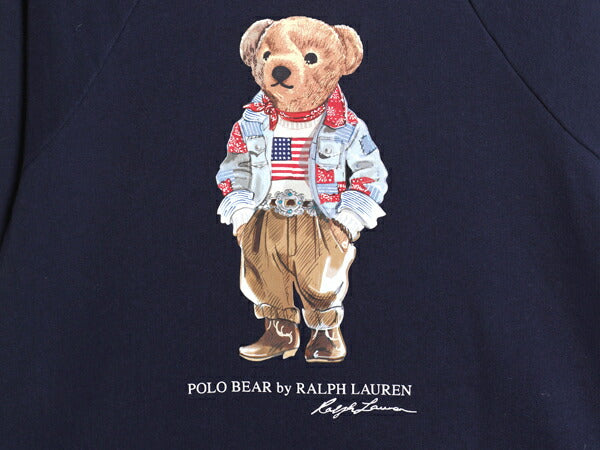 ポロベア ポロ ラルフローレン プリント スウェット ワンピース キッズ XL レディース S 古着 コットン 裏起毛 チュニック プルオーバー 紺