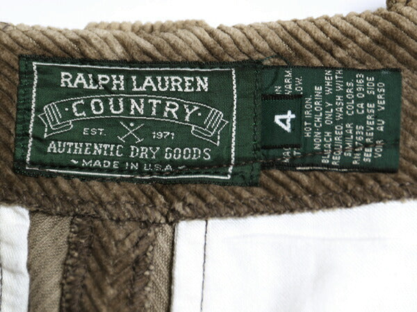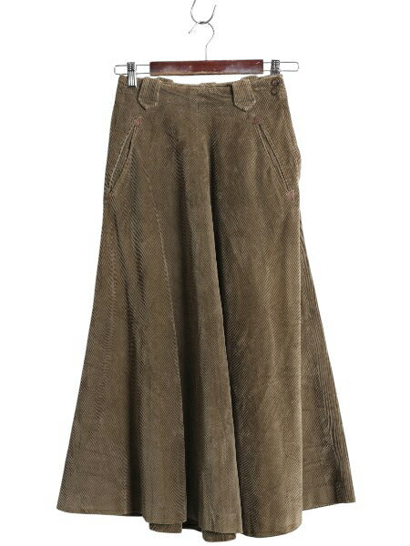 80s USA製 ポロカントリー ラルフローレン 細畝 コーデュロイ ロング スカート レディース XS 程 コットン フレア ウエスタン マキシ丈 茶