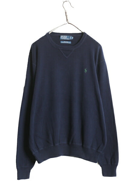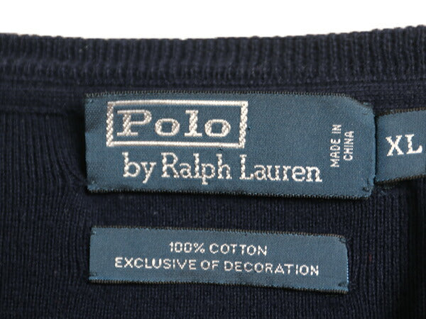 00s ポロ ラルフローレン リブ編み コットン ニット スウェット メンズ XL 古着 セーター トレーナー ワンポイント 前V 薄手 大きいサイズ