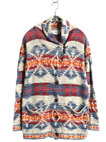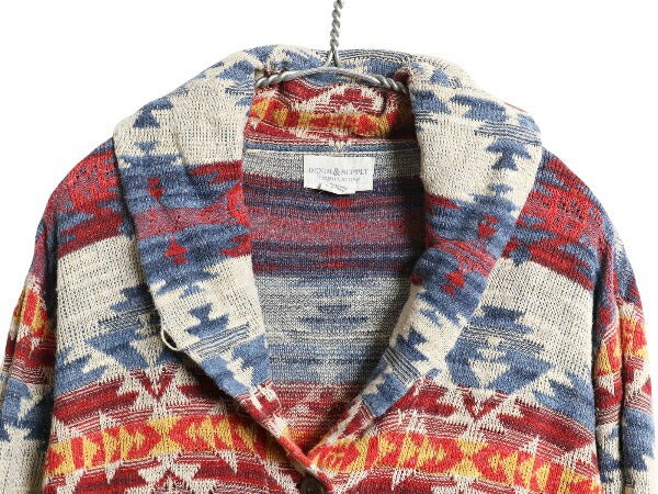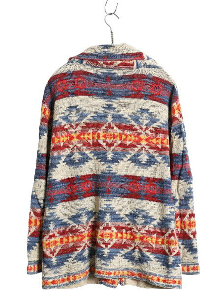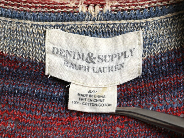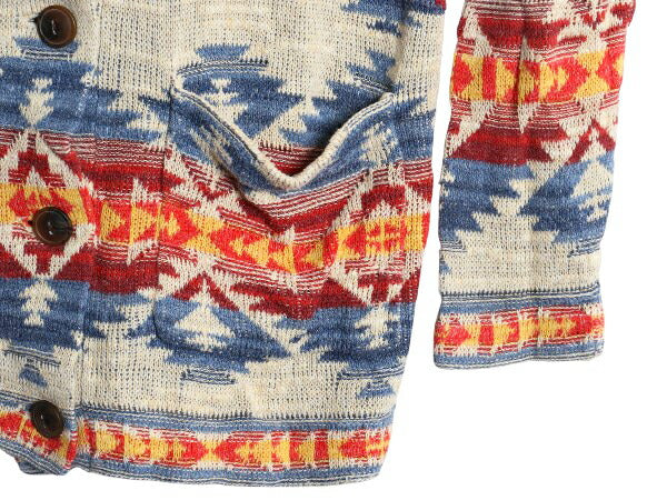 デニム&サプライ ラルフローレン ネイティブ ニット カーディガン レディース S ポロ コットン ショールカラー 前開き 羽織り マルチカラー