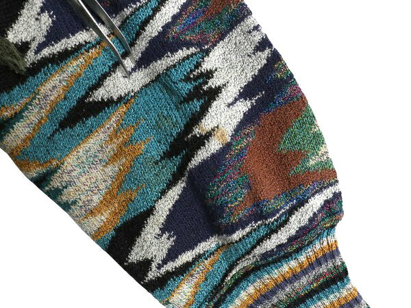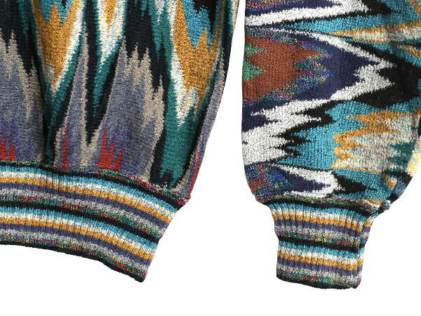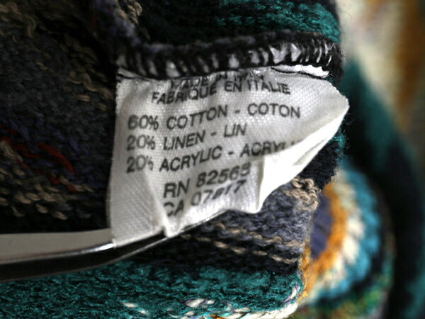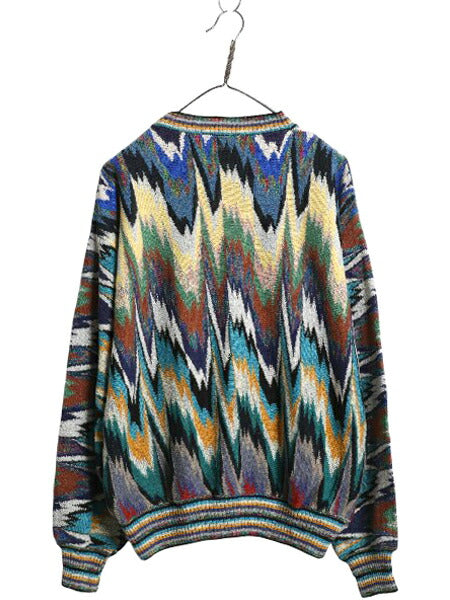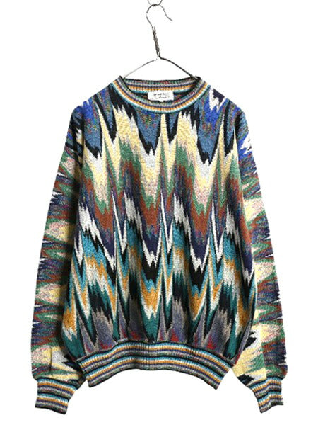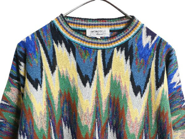 90s イタリア製 MONDO 総柄 デザイン ニット セーター メンズ S / 古着 オールド コットン リネン アクリル 薄手 長袖ニット マルチカラー