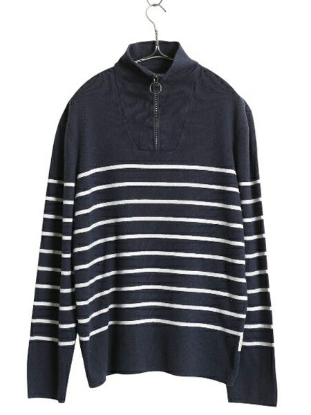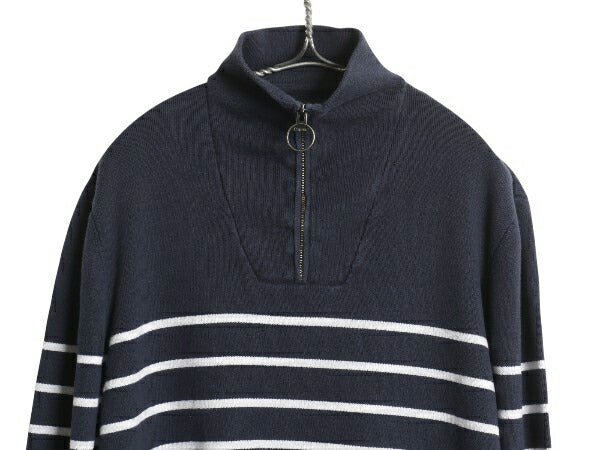 バブアー ハーフジップ ボーダー ニット セーター メンズ M / コットン 長袖ニット ハイネック ワンポイント シンプル ゆったり カットソー