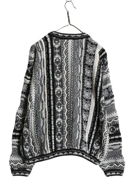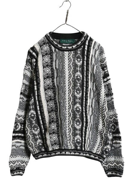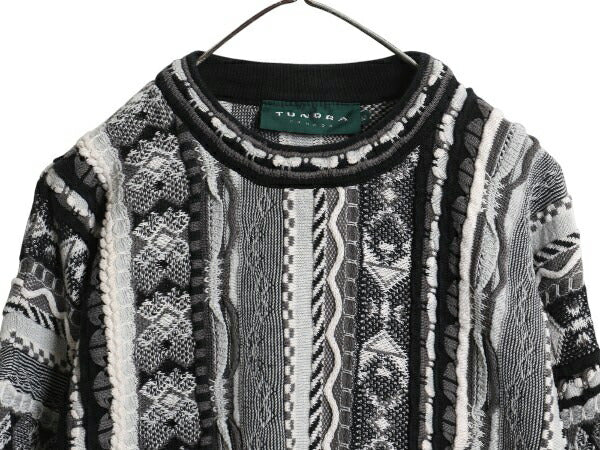 90s カナダ製 TUNDRA 3D 立体編み デザイン ニット セーター メンズ XL / オールド コットン 長袖ニット総柄 大きいサイズ マルチカラー