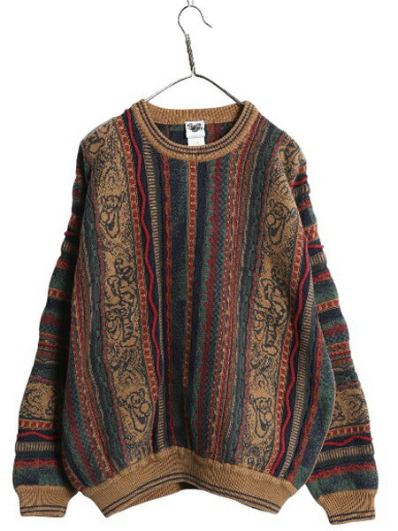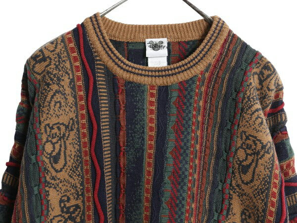 90s 3D 立体編み コットン ニット セーター メンズ レディース XL オールド ディズニー オフィシャル キャラクター ティガー 大きいサイズ