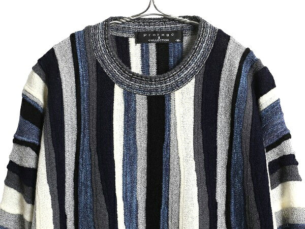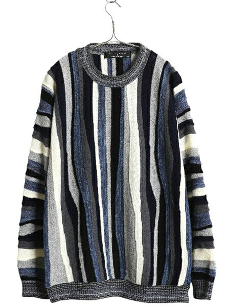 90s Protege 3D 立体編み デザイン ニット セーター メンズ M / 古着 オールド 長袖ニット 総柄 マルチカラー プルオーバー ゆったり 薄手