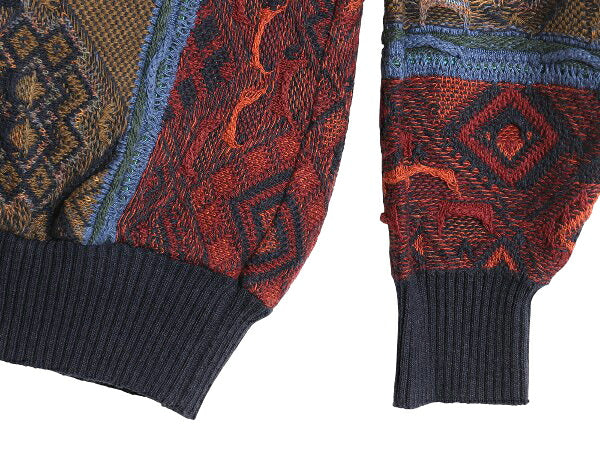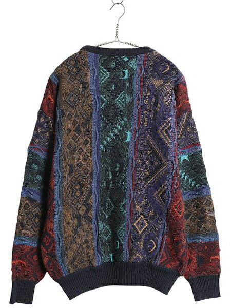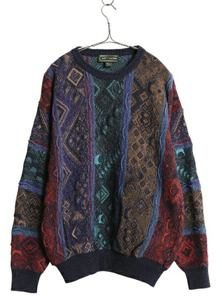 90s CROFT&BARROW 3D 立体編み デザイン ニット セーター メンズ L / オールド コットン アクリル 長袖ニット クルーネック マルチカラー