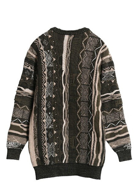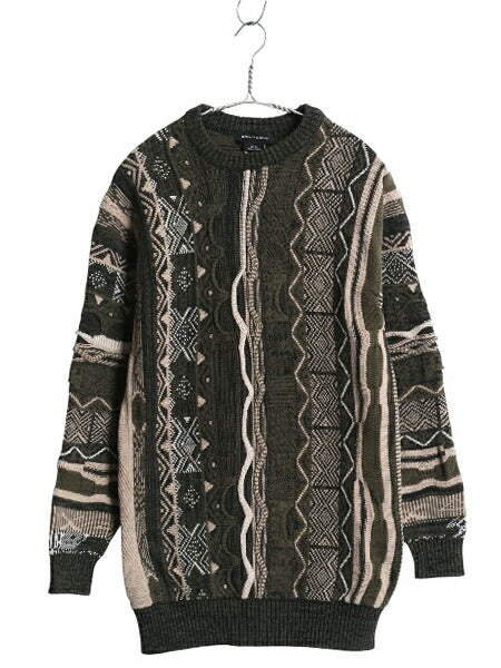 COTTON ON GARMENTS 3D 立体編み デザイン ニット セーター メンズ S / 長袖ニット クルーネック 総柄 マルチカラー プルオーバー ゆったり