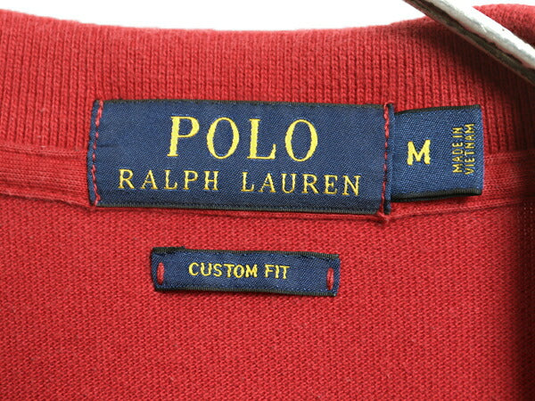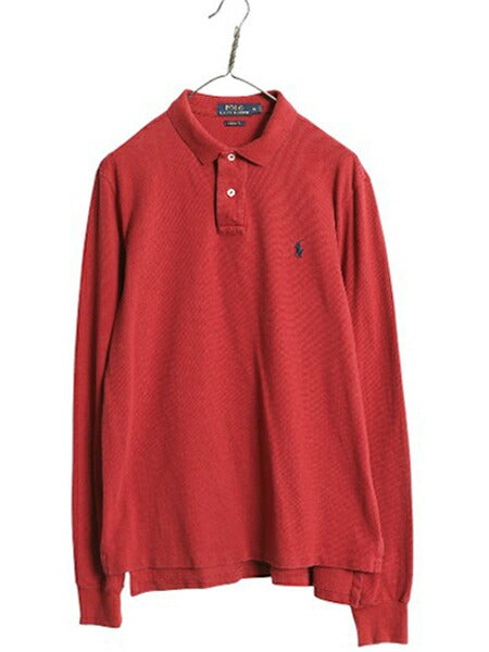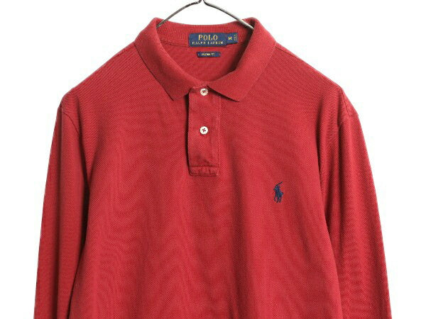 ポロ ラルフローレン 鹿の子 長袖 ポロシャツ メンズ М 古着 長袖シャツ コットン カットソー ワンポイント シンプル カジュアル レッド