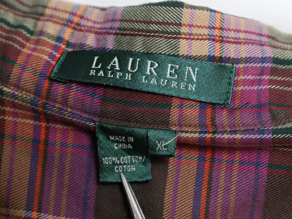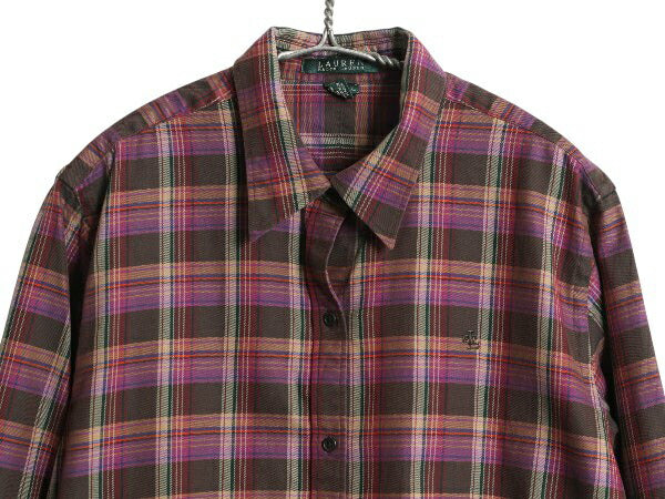 00s ローレン ラルフローレン チェック 長袖 シャツ レディース XL / オールド コットン マルチカラー ワンポイント 大きいサイズ きれいめ