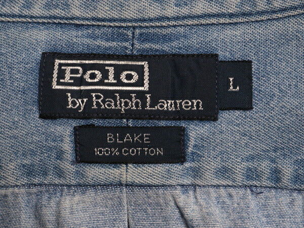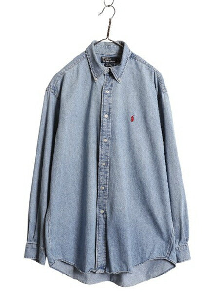 90s ラルフローレン ボタンダウン 長袖 デニム シャツ メンズ L オールド ポロ 長袖シャツ ワンポイント ヘビーウェイト コットン シンプル