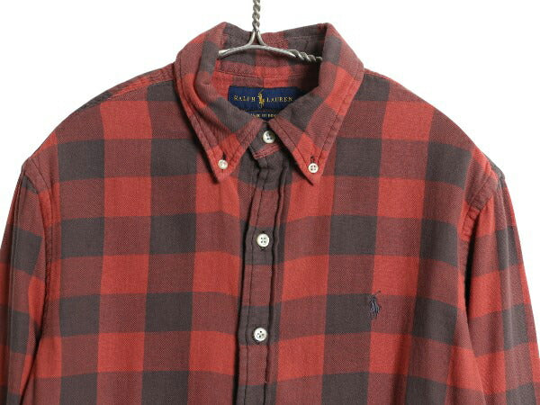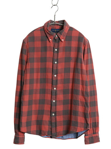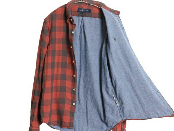 ラルフローレン チェック 長袖 ボタンダウン シャツ メンズ S 古着 ポロ 長袖シャツ コットン ガーゼ シャンブレー ライナー付き 2レイヤー