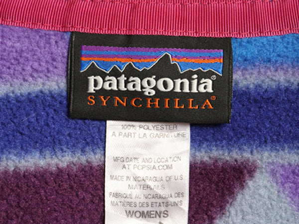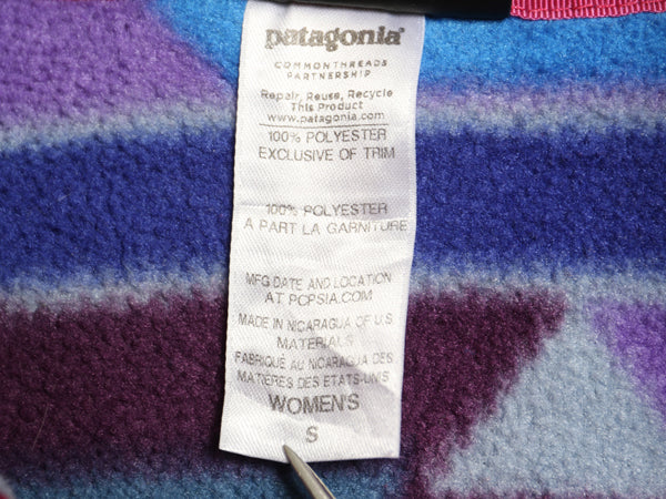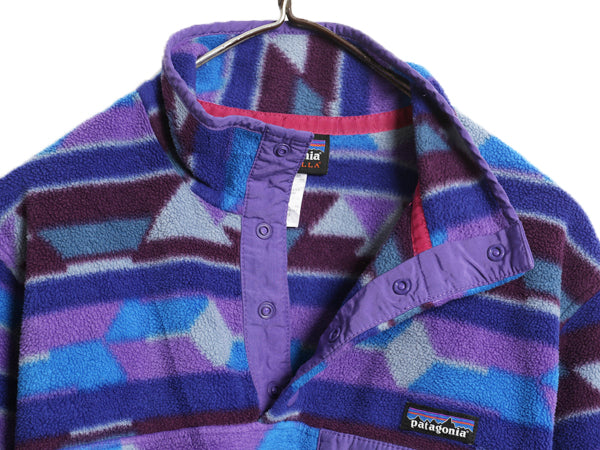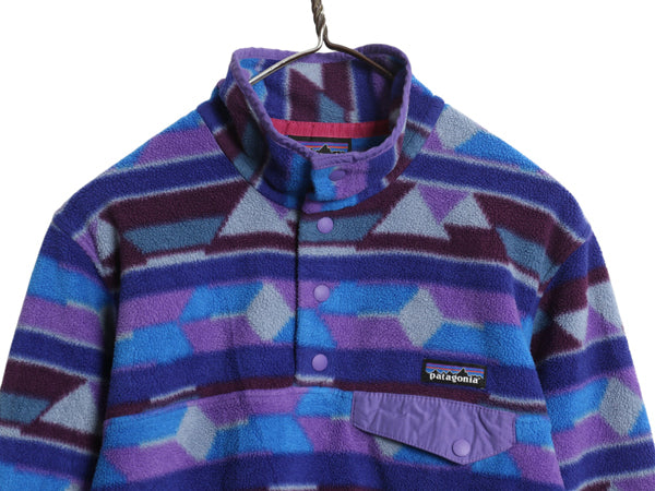 パタゴニア 総柄 ライトウェイト シンチラ スナップT レディース S 古着 14年製 フリース プルオーバー ジャケット ブルゾン マルチカラー