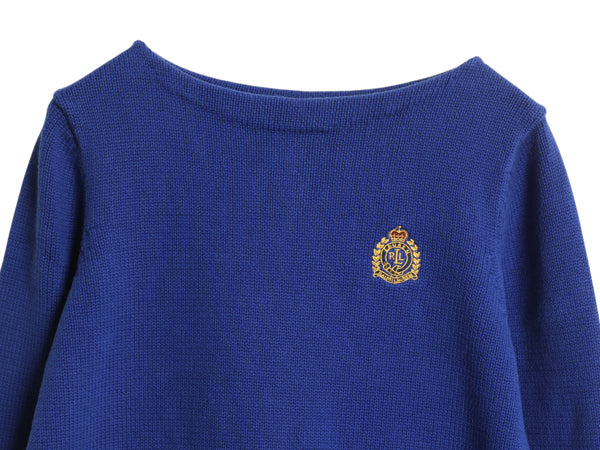 90s ローレン ラルフローレン ボートネック コットン ニット セーター レディース M 古着 オールド ポロ 長袖ニット カットソー シンプル