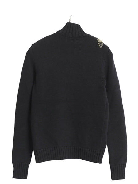 00s ローレン ラルフローレン 龍 金 刺繍 ハイネック コットン ニット セーター レディース S オールド ポロ スーベニア デザイン ブラック
