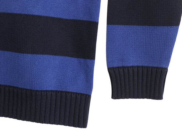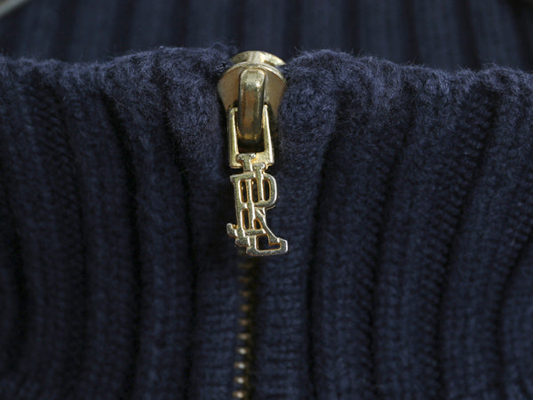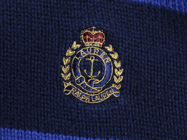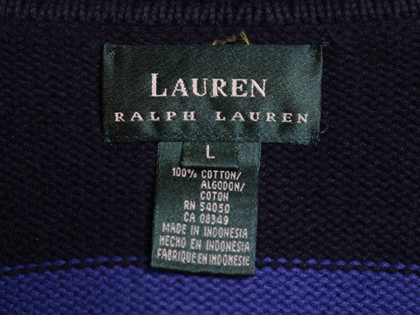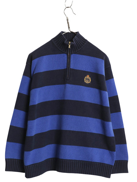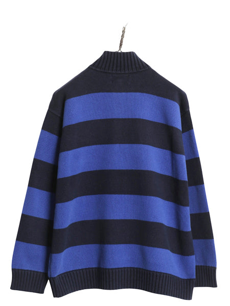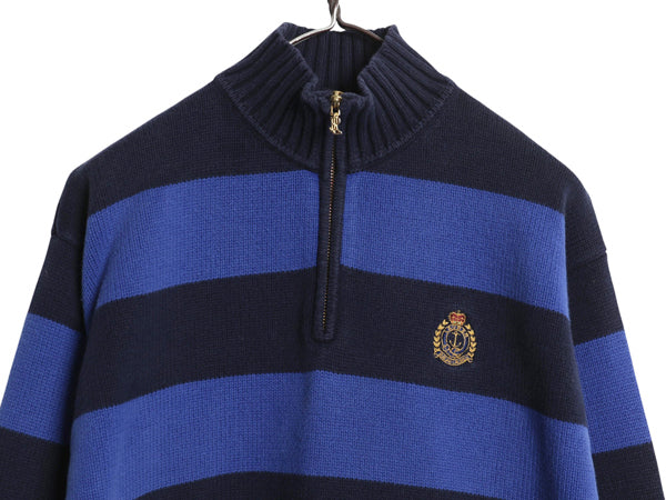 90s ローレン ラルフローレン ハーフジップ コットン ニット セーター レディース L 長袖ニット ワンポイント ゆったり ボーダー ツートン