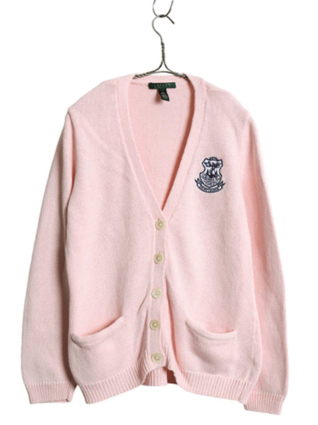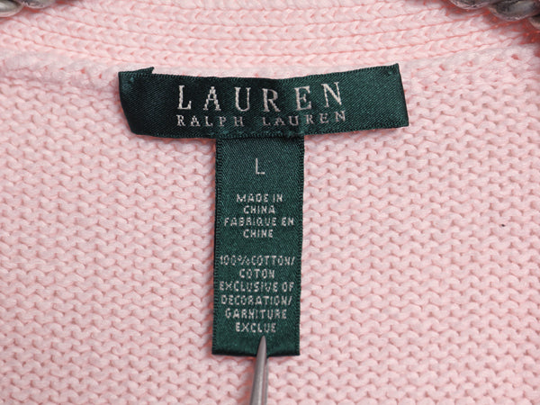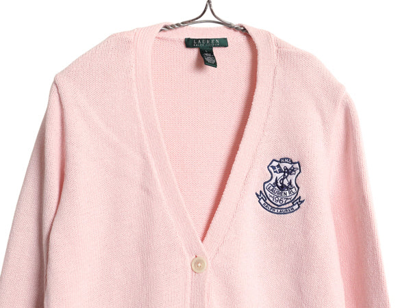 00s ローレン ラルフローレン コットン ニット カーディガン レディース L / オールド ポロ セーター 重ね着 前開き 羽織り ワンポイント
