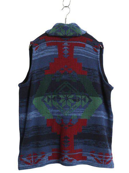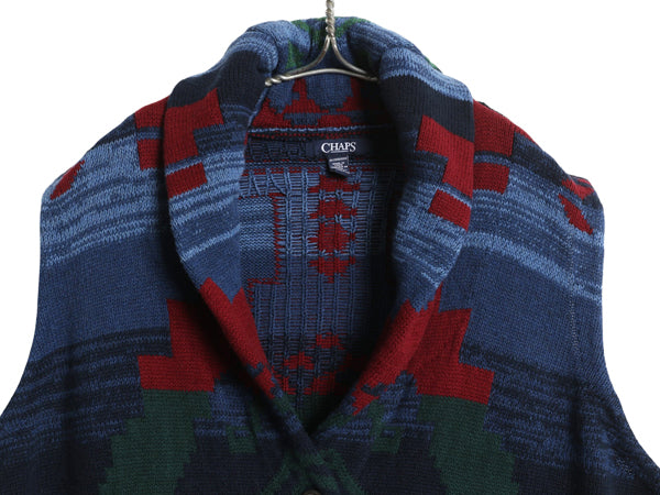 チャップス ラルフローレン ショールカラー ニット ベスト レディース XXXL / 総柄 コットン アクリル 前開き 重ね着 羽織り 大きいサイズ