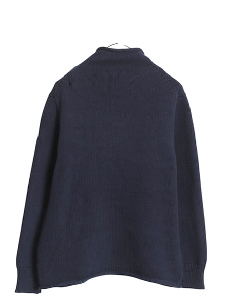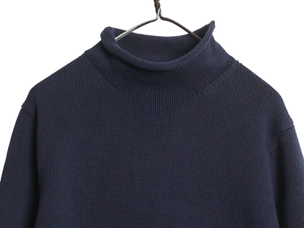 ジェイクルー ロールネック ニット セーター メンズ S コットン プルオーバー リブ編み ハイネック 無地 カットソー シンプル ゆったり 紺
