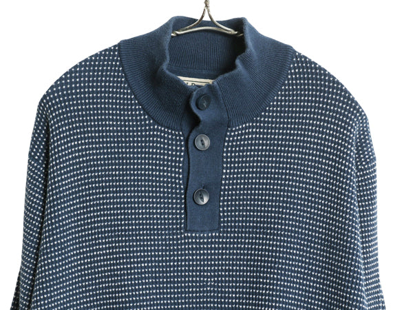 エルエルビーン ヘンリーネック バーズアイ ニット セーター メンズ XL コットン カシミヤ プルオーバー 大きいサイズ ツートン 総柄 薄手