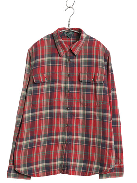 00s ローレン ラルフローレン チェック 長袖 シャツ レディース XL / オールド ポロ コットン マルチカラー 袖 ロールアップ 大きいサイズ