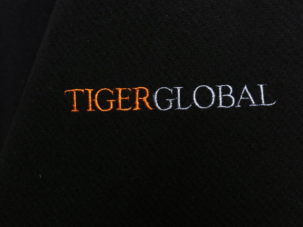 左裾にワンポイントロゴ刺繍、左袖にも企業ロゴ刺繍入り